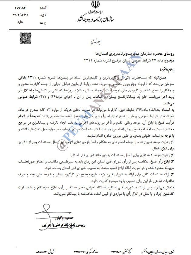 اهم موارد در بحث فسخ پیمان-ماده 47نشریه 4311
