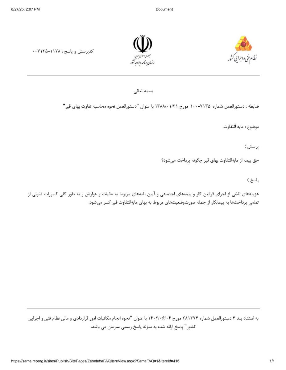 حق بيمه از مابهالتفاوت بهای قير